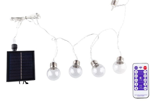 Guirlande Lumineuse Solaire Extérieure LED - 25 Ampoules Blanc Chaud - 9,5 m - Télécommande