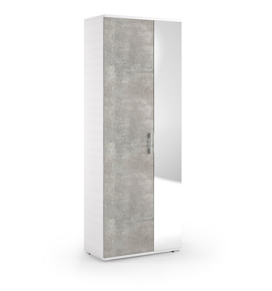 Polyvalent avec miroir 1 tiroir et 6 étagères intérieures, porte en béton blanc avec miroir