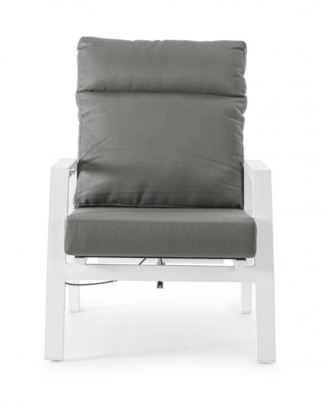 struttura in alluminio verniciata a polvere (poliestere). schienale reclinabile in libera posizione e seduta in textilene 1x1. cuscini sfoderabili con tessuto olefin (100% polipropilene).