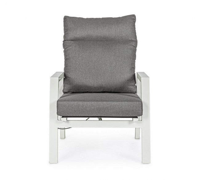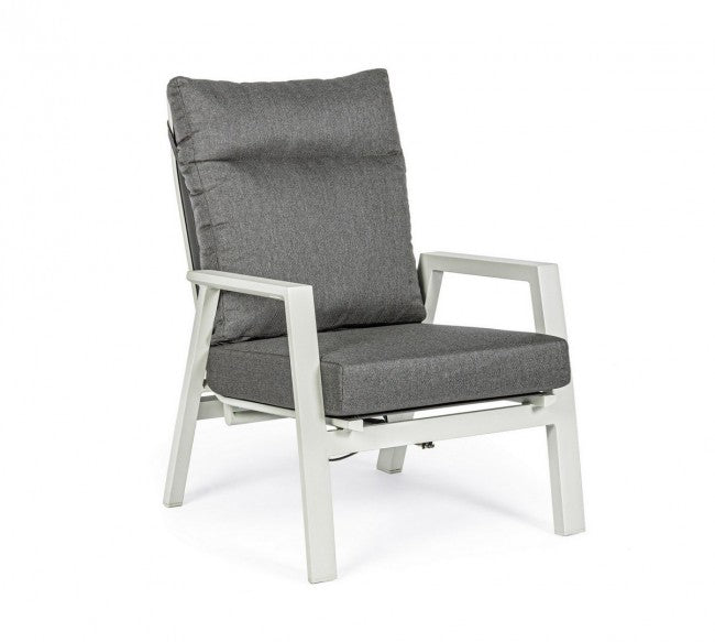 struttura in alluminio verniciata a polvere (poliestere). schienale reclinabile in libera posizione e seduta in textilene 1x1. cuscini sfoderabili con tessuto olefin (100% polipropilene).