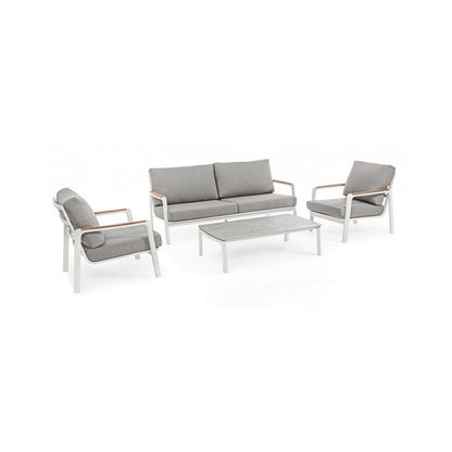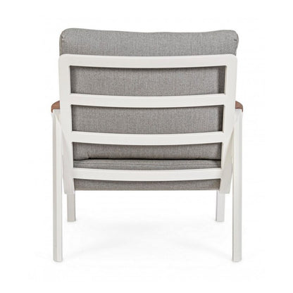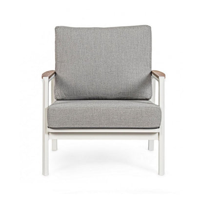 Fauteuil d'extérieur en aluminium/bois avec coussin blanc 78x87x h86
