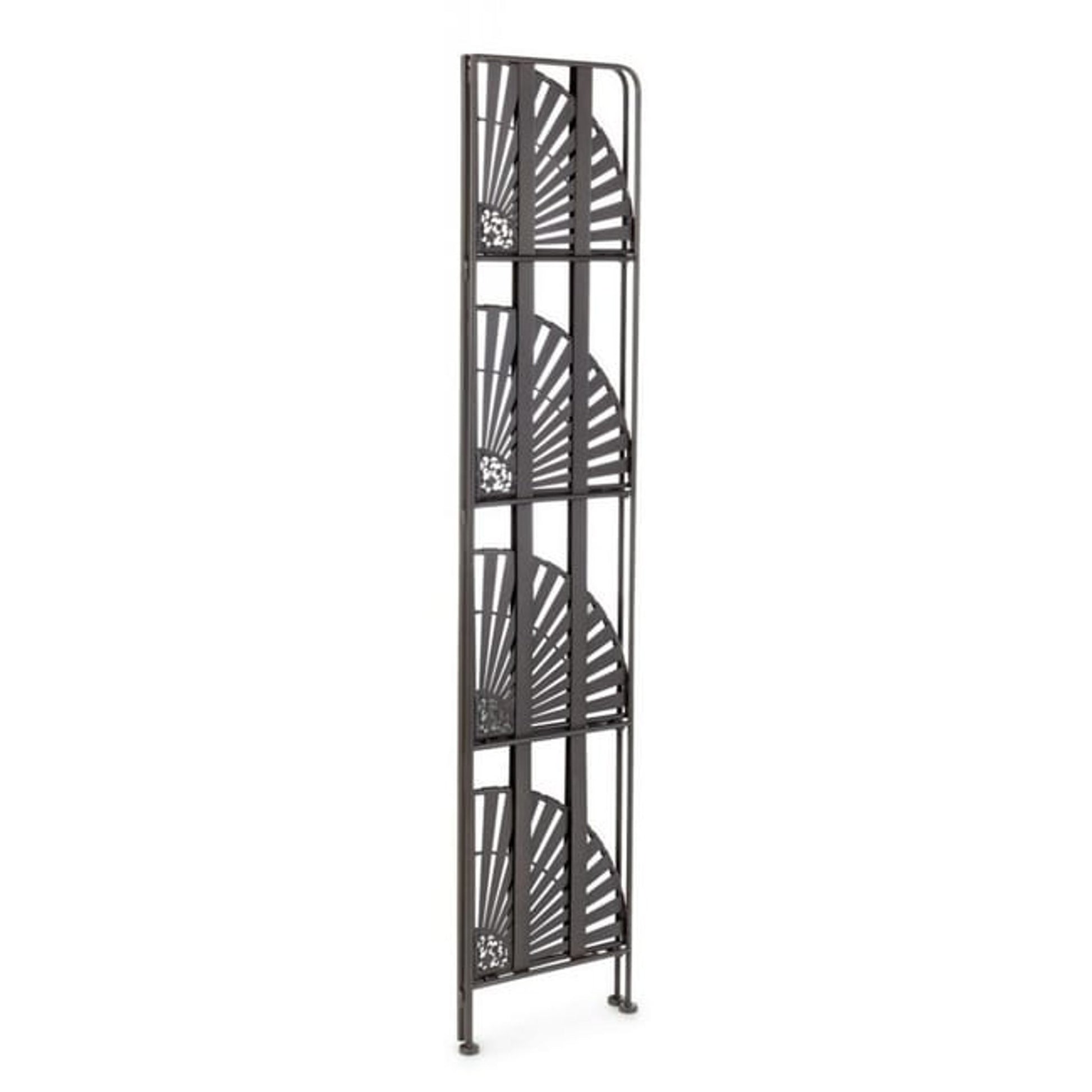 L'angoliera 4 ripiani in stile industriale modello RAY è realizzata in acciaio verniciato a polvere epossidica di colore marrone. Questo mobile è pieghevole, rendendolo pratico e versatile per ogni ambiente. Le dimensioni sono 62 x 31 x h.116 cm, perfette per ottimizzare gli spazi senza rinunciare allo stile.