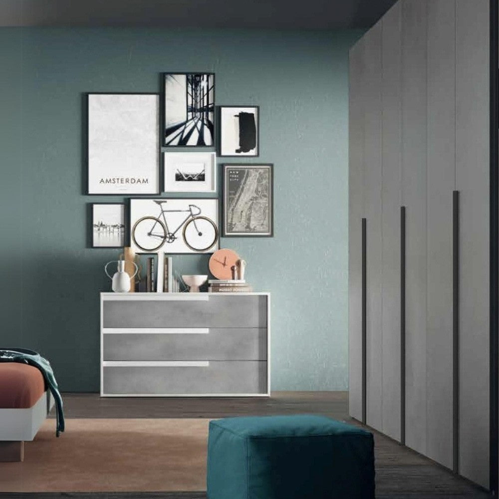Armadio Coco 6 ante battenti colore cemento maniglie nere opache