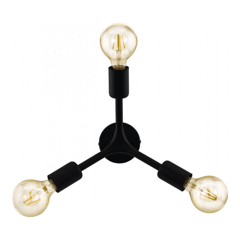 Le plafonnier BOCADELLA de la marque EGLO possède une structure en métal finition noire avec 3 douilles E27.