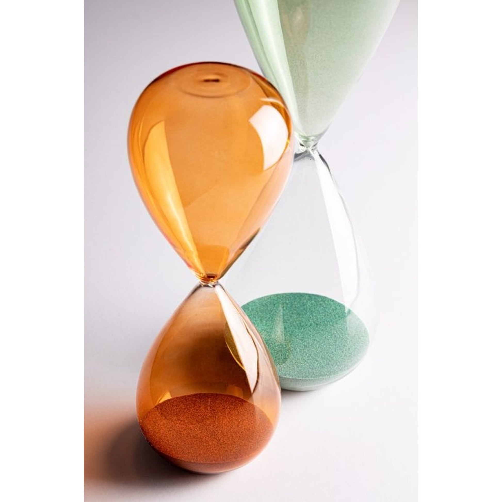 Scopri la clessidra arancione-marrone con un diametro di 10 cm e un'altezza di 29 cm. Realizzata in vetro e sabbia, questa clessidra è un elemento decorativo perfetto per aggiungere un tocco moderno al tuo spazio. Con un peso di soli 0,47 kg, è leggera e facile da posizionare in qualsiasi ambiente.