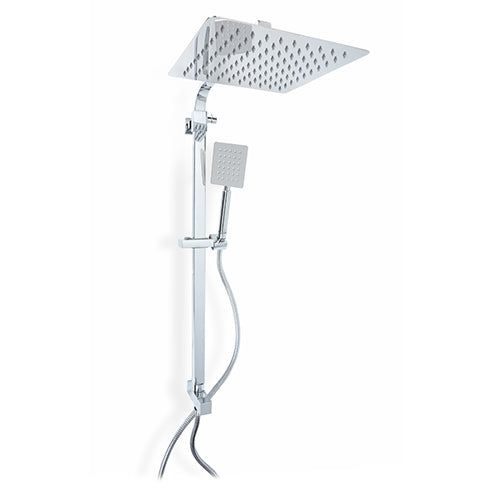 Colonne de douche en acier inoxydable AISI 304, laiton et acier chromé. Pomme de douche 25x25 cm en acier inoxydable AISI 304 poli. Douchette à main Diam. 8x10 cm en acier inoxydable AISI 304 poli. Canne télescopique avec attaches réglables. Inverseur avec 1/2 raccordement d'eau.