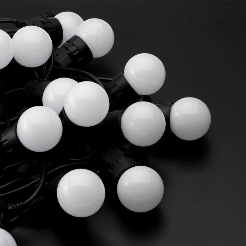 La chaîne lumineuse Twinkly Festoon est dotée de 20 LED G45 RVB. Grâce à une application ou en relation avec des systèmes de maison intelligente, des scénarios de lumière colorée de toutes sortes peuvent être créés et gérés pour créer une atmosphère.