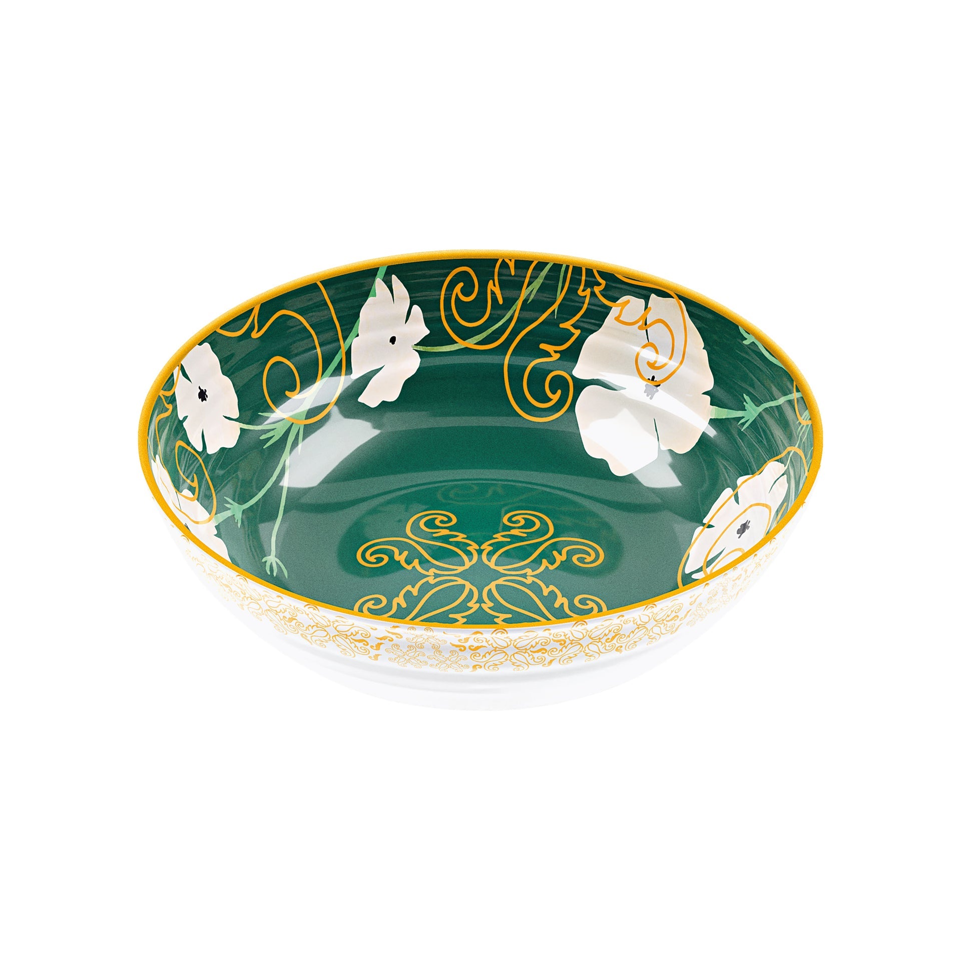 I contenitori Fusion uniscono design raffinato e praticità d’uso, portando eleganza e stile in ogni tavola. Il verde intenso si combina con il bianco dei fiori e l’oro dei segni grafici, creando un effetto sofisticato, adatto a tutte le stagioni e a qualsiasi occasione, dai pranzi formali ai momenti di convivialità più informali, in casa o all’aperto.