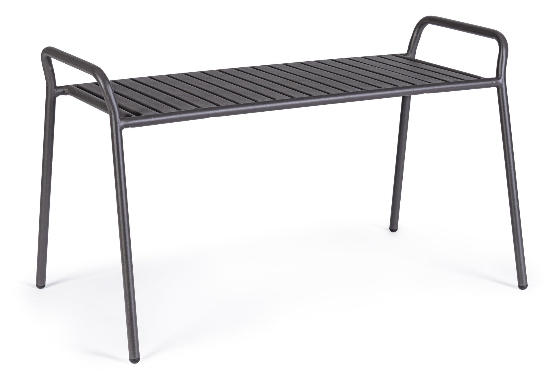 Acier traité pour une utilisation en extérieur (E-coating) et thermolaqué (polyester) avec finition mate. Le banc Dalya anthracite est empilable et est fourni sans carton d'emballage.