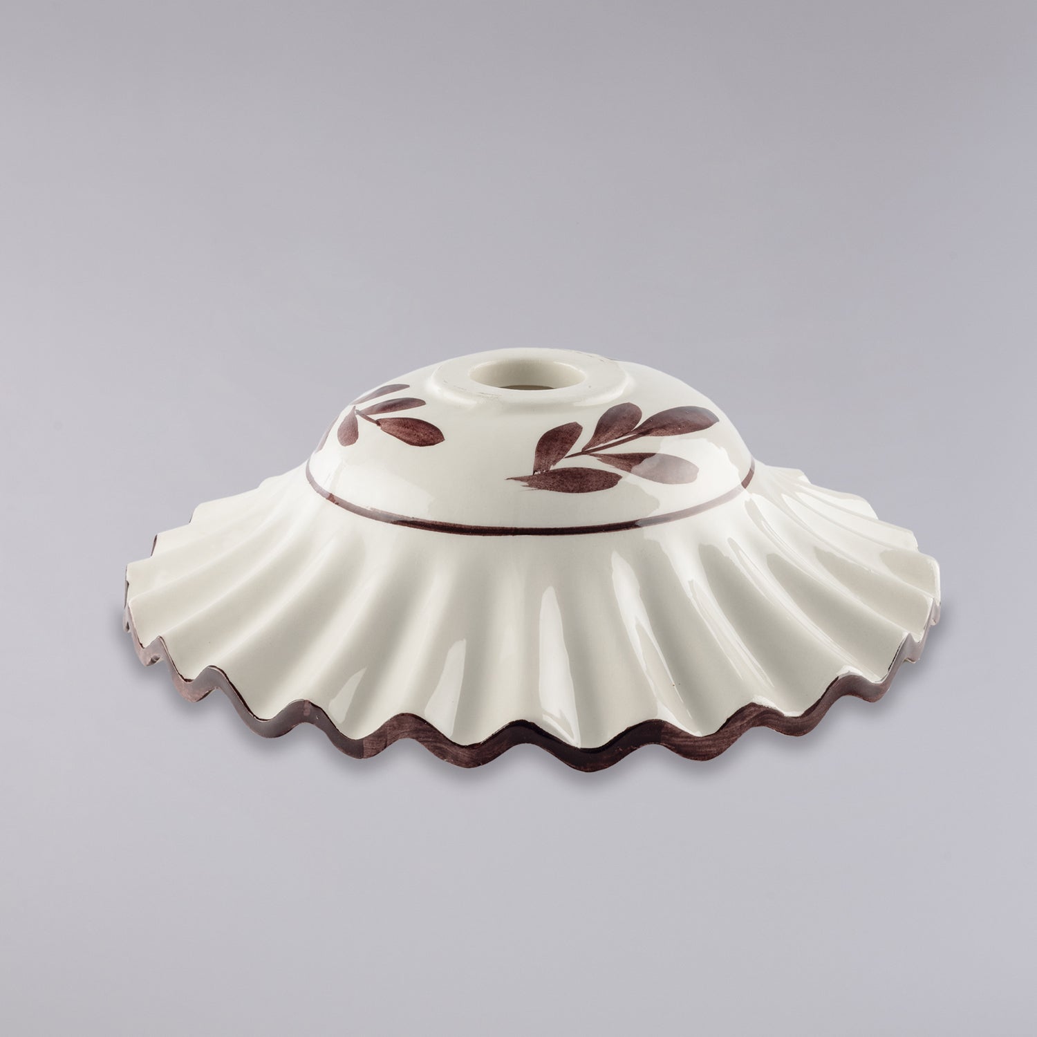 Diffusore in ceramica diametro 30 bianco lucido e marrone con decoro a mano palme H.9 - Ø30