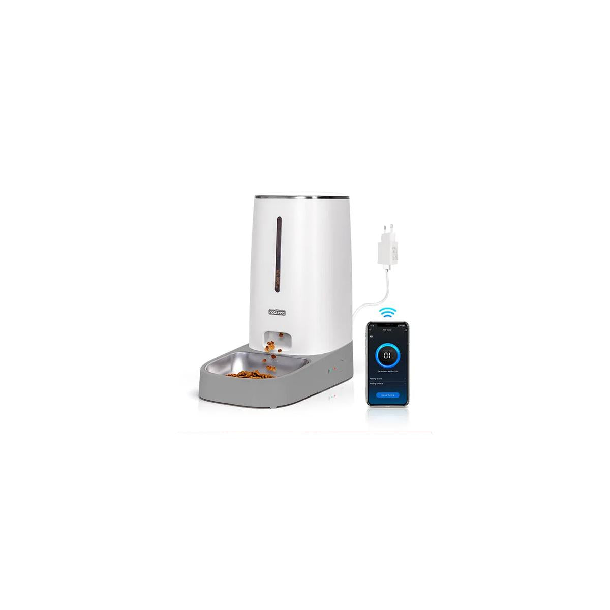 Mantieni il tuo animale domestico nutrito e felice anche a distanza con il distributore automatico di cibo Nobleza. Grazie all'app dedicata, puoi somministrare i pasti in qualsiasi momento e ricevere notifiche in caso di serbatoio vuoto, blocco del cibo o batteria scarica. Puoi programmare fino a 10 pasti giornalieri, con 1-24 porzioni per pasto (circa 5 g ciascuna) per mantenere una dieta equilibrata. Il serbatoio da 1,2 kg soddisfa il fabbisogno di cani e gatti fino a 15 giorni, mentre l'essiccante incluso mantiene il cibo fresco più a lungo. Inoltre, puoi registrare un messaggio vocale di 10 secondi che verrà riprodotto ad ogni pasto, così il tuo animale sentirà la tua voce anche quando non sei a casa.