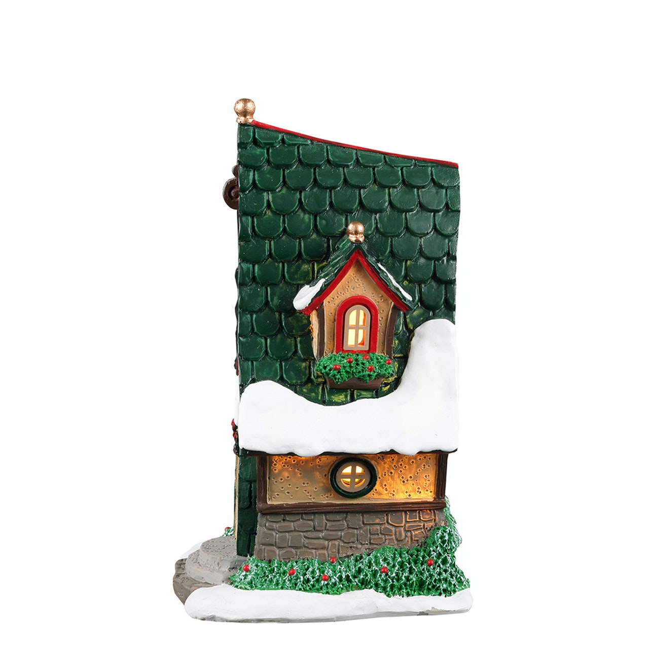 Avec son toit courbé et incliné et sa cheminée en canne de sucre, le n°4 Elf Lane est certainement l'une des plus belles maisons du Pays des Merveilles du Père Noël. Regardez par la fenêtre éclairée et nous sommes sûrs que vous verrez un ou deux elfes s'amuser pendant les fêtes. Avec une légère couche de neige sur le toit branlant, on voit bien que c'est Noël toute l'année dans ce lieu magique !