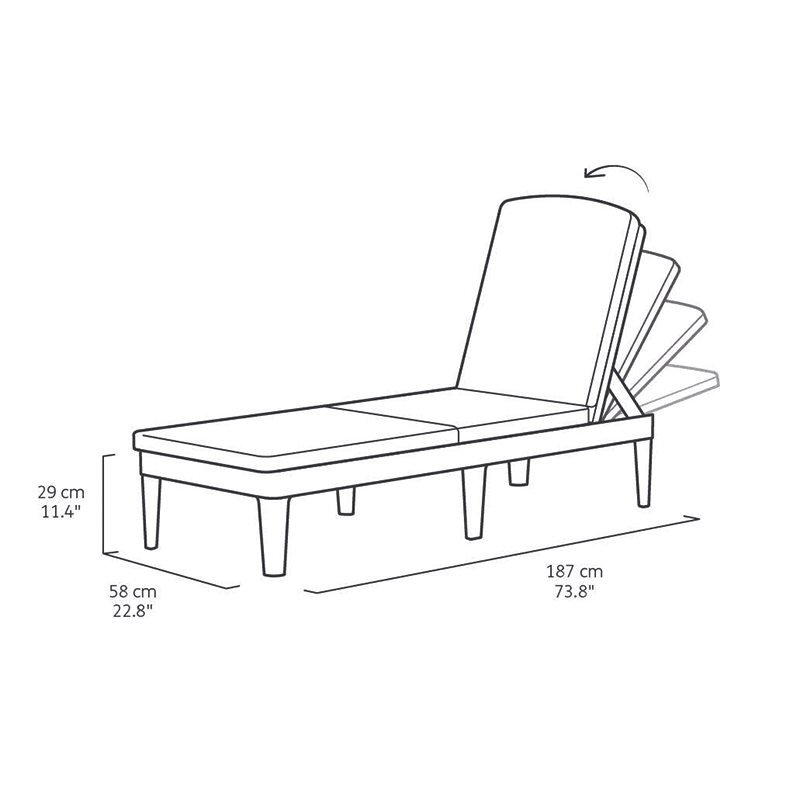 Profitez d'agréables moments de détente avec Jaipur. Réalisé avec une finition particulière qui reproduit le tissage typique du rotin, il est équipé d'un dossier inclinable dans 4 positions différentes. Facile à assembler et grâce à la possibilité de le fermer facilement, il est parfait pour occuper les petits espaces pendant les mois les plus froids de l'année. Fabriqué en résine durable et résistante aux intempéries. Ne se décolore pas et ne se décolore pas. Finition élégante qui reproduit le tissage typique du rotin. Dossier inclinable sur 4 positions différentes. Pliable pour le ranger pendant les mois les plus froids de l'année, même dans les espaces les plus intimes. Dimensions : L 187 x P 58 x H 29 cm.