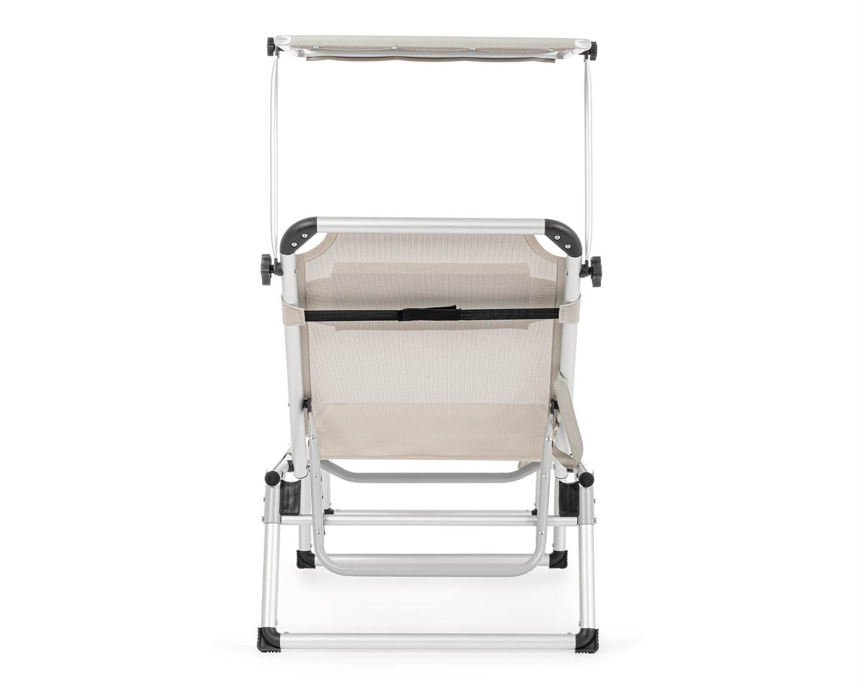 Le transat pliant avec auvent Griggio Ghiaccio est le choix idéal pour profiter du soleil en tout confort. Avec une structure en aluminium anodisé ø28x1,0mm et un tissu textilène 2x1 580gr/m2, ce bain de soleil offre durabilité et résistance.