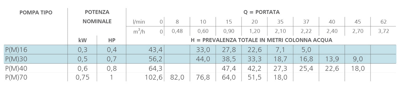 Pompe électrique périphérique conçue pour développer des hauteurs de chute élevées à l'aide de moteurs de puissance limitée. Monophasé. Performances : 355-PM-16 Q= 10 :37 litres/min. H= 33 : 5 355-PM-30 Q= 10 :50 litres /min. H= 47:8 355-PM-40 Q= 15:45 litres /min. H= 47:18 355-PM-70 Q= 8:35 litres /min. H = 82:18