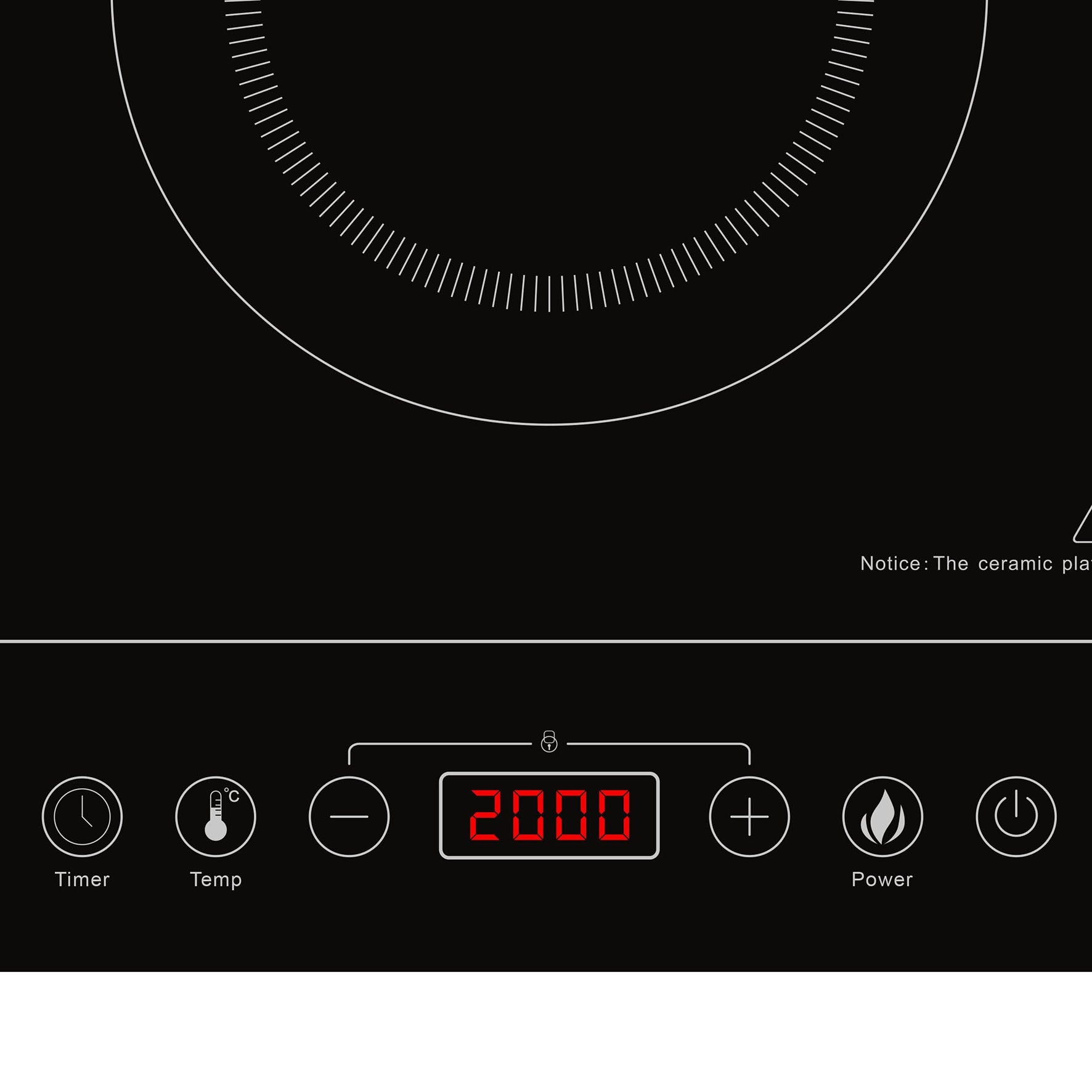 - Réglage de la puissance des grandes plaques : 200-400-600-800-1000-1200-1400-1600-1800-2000W