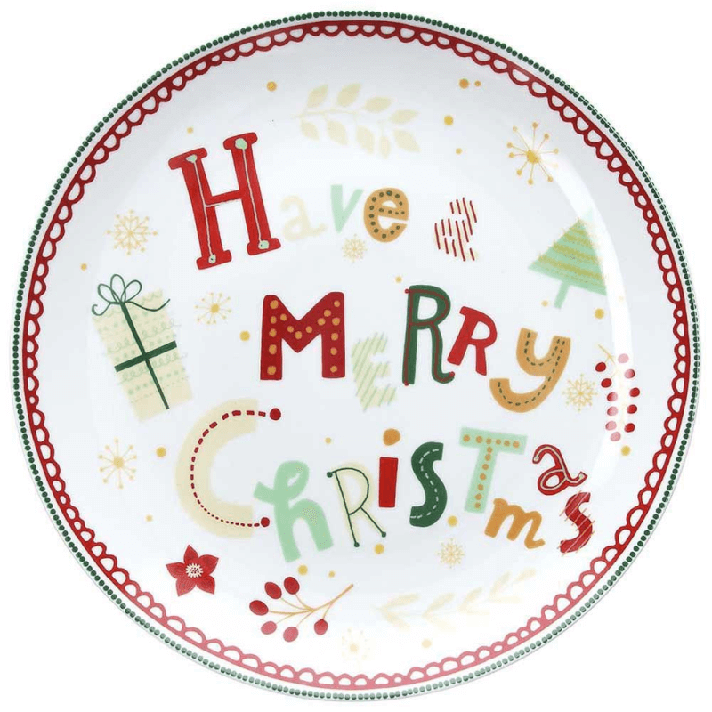La base blanche est décorée d'un cadre rouge et vert et de l'inscription joyeuse « Have a Merry Christmas » au centre.