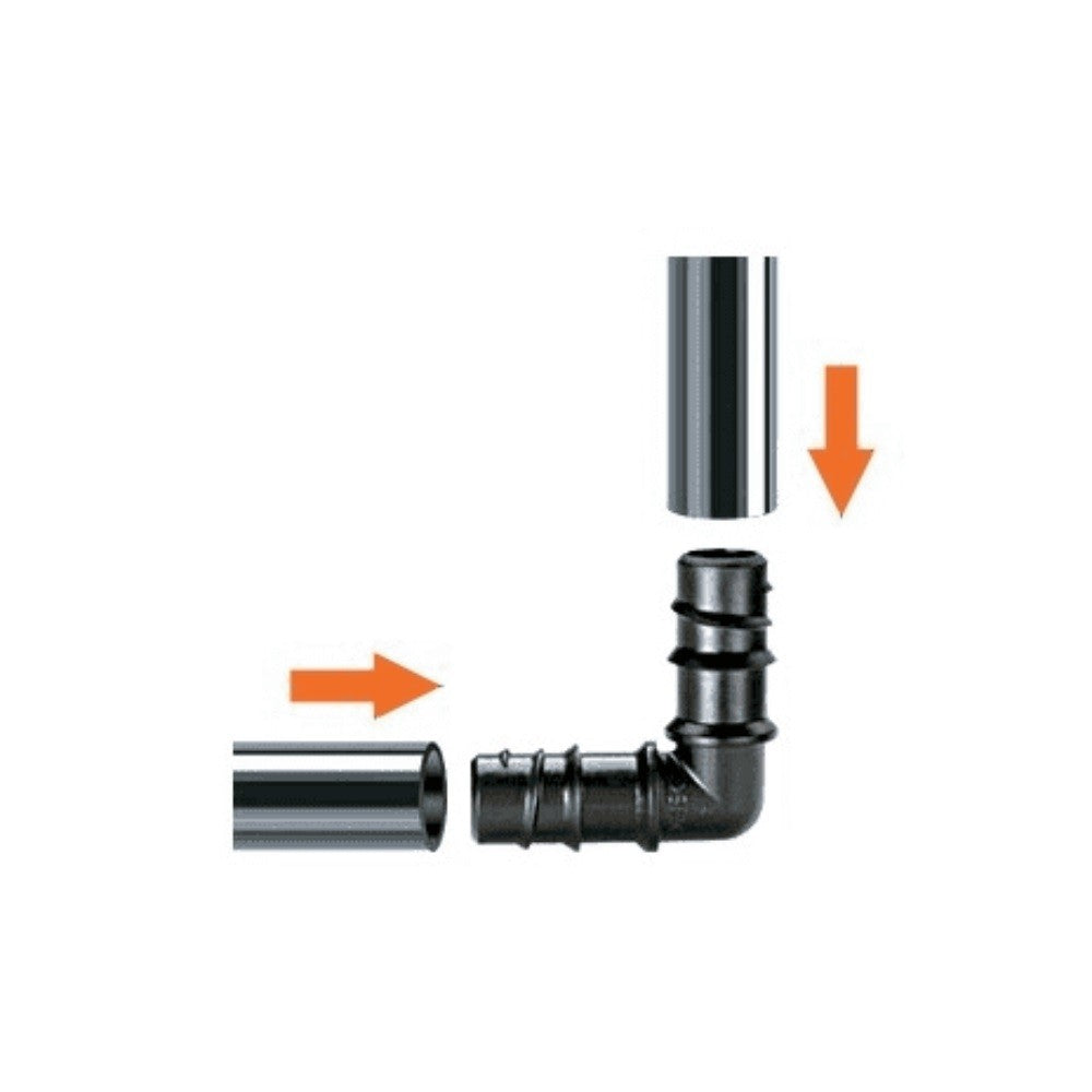Ferrure d'angle Claber. Vous permet de connecter deux morceaux de tuyau collecteur de 1/2" (13 - 16 mm).