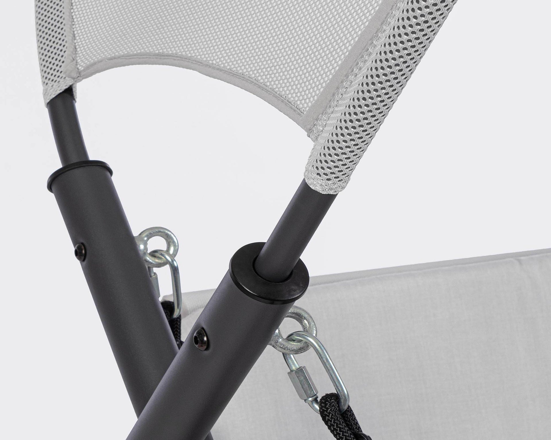 La balançoire de jardin 2 places Arkell est la solution parfaite pour profiter de votre espace extérieur en toute détente. La structure en acier, traitée pour résister aux conditions extérieures, est revêtue de poudre de polyester, garantissant ainsi sa durabilité dans le temps. L'auvent est recouvert d'un tissu maillé, composé à 100 % de polyester d'une densité de 230 g/m2, offrant une protection contre les rayons du soleil. L'assise est en textilène 2x1, un matériau résistant et confortable. Les coussins, qui ne sont pas déhoussables, sont en tissu polyester filé pour plus de confort. Les pieds réglables vous permettent d'adapter la balançoire à vos besoins. La balançoire est livrée montée.