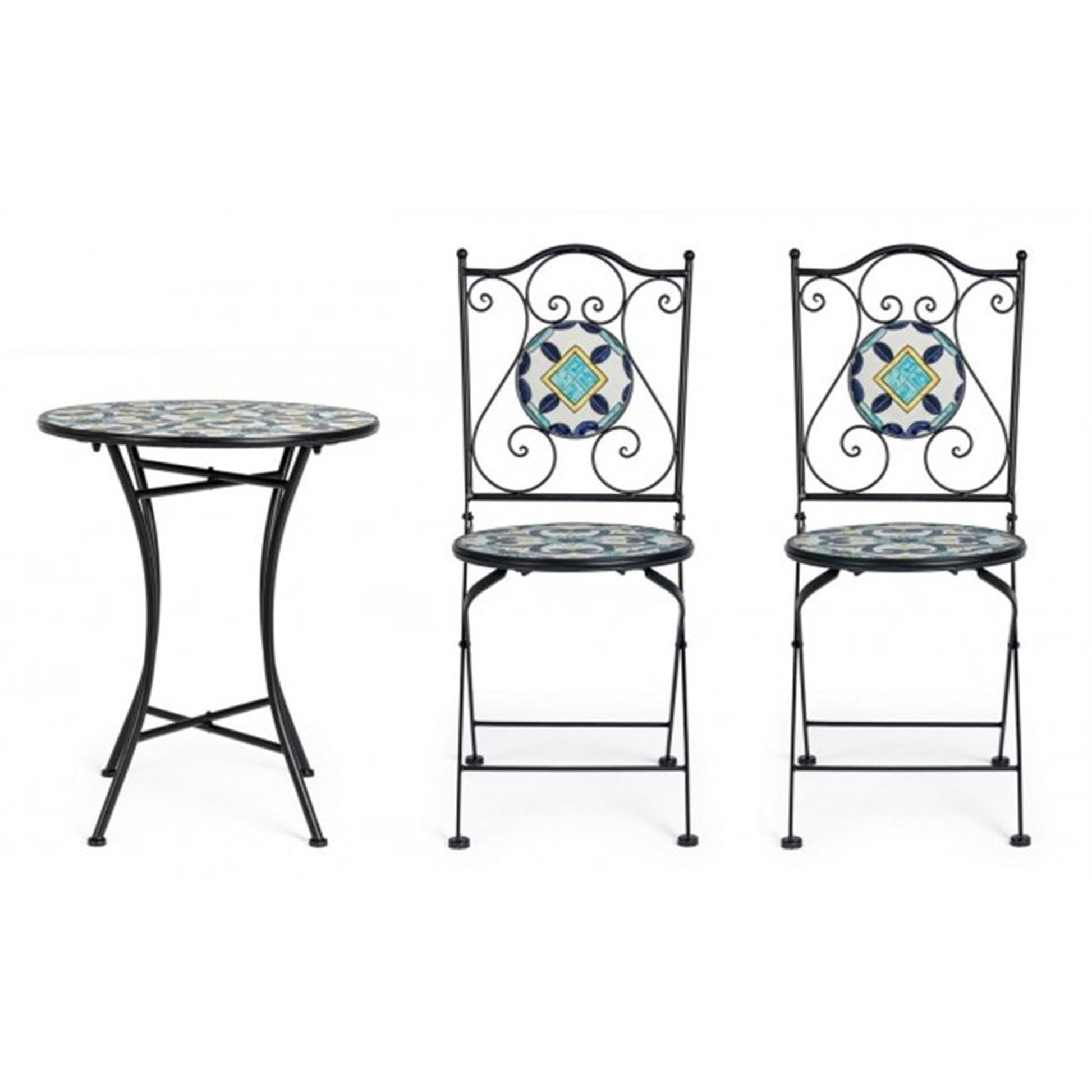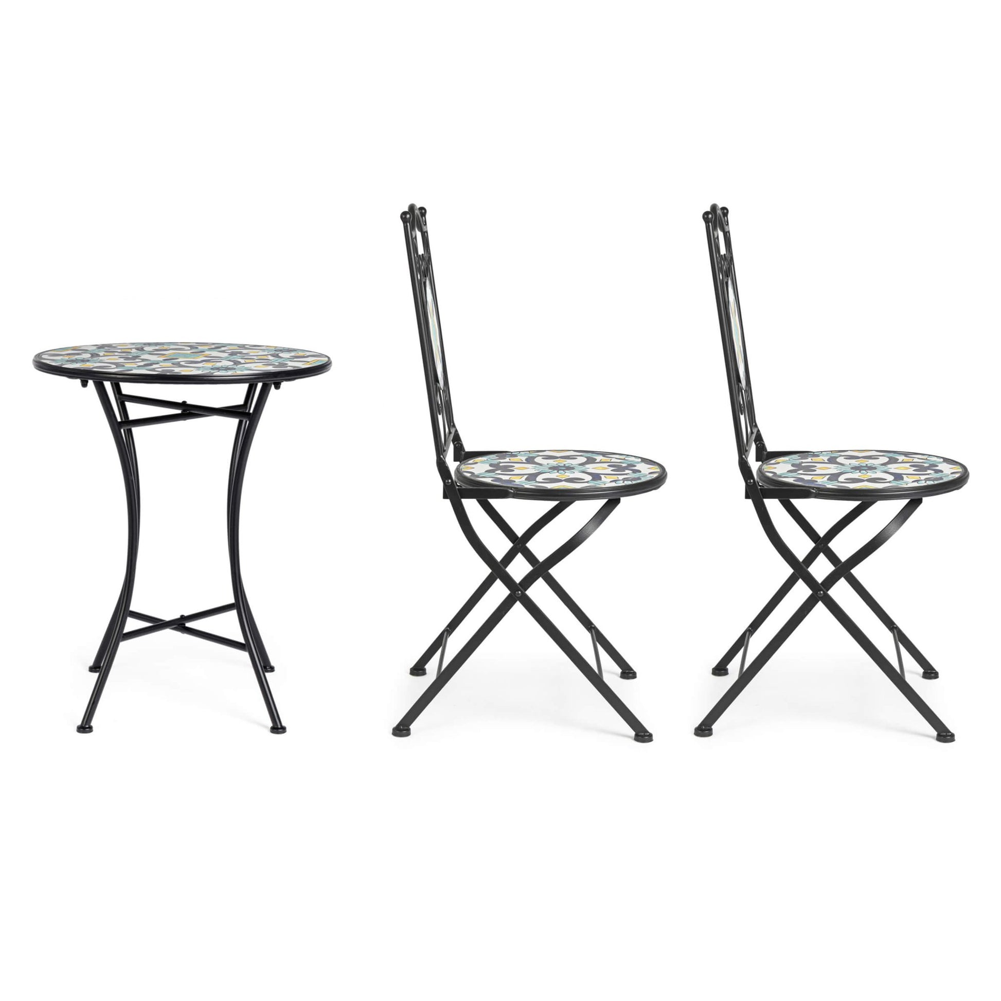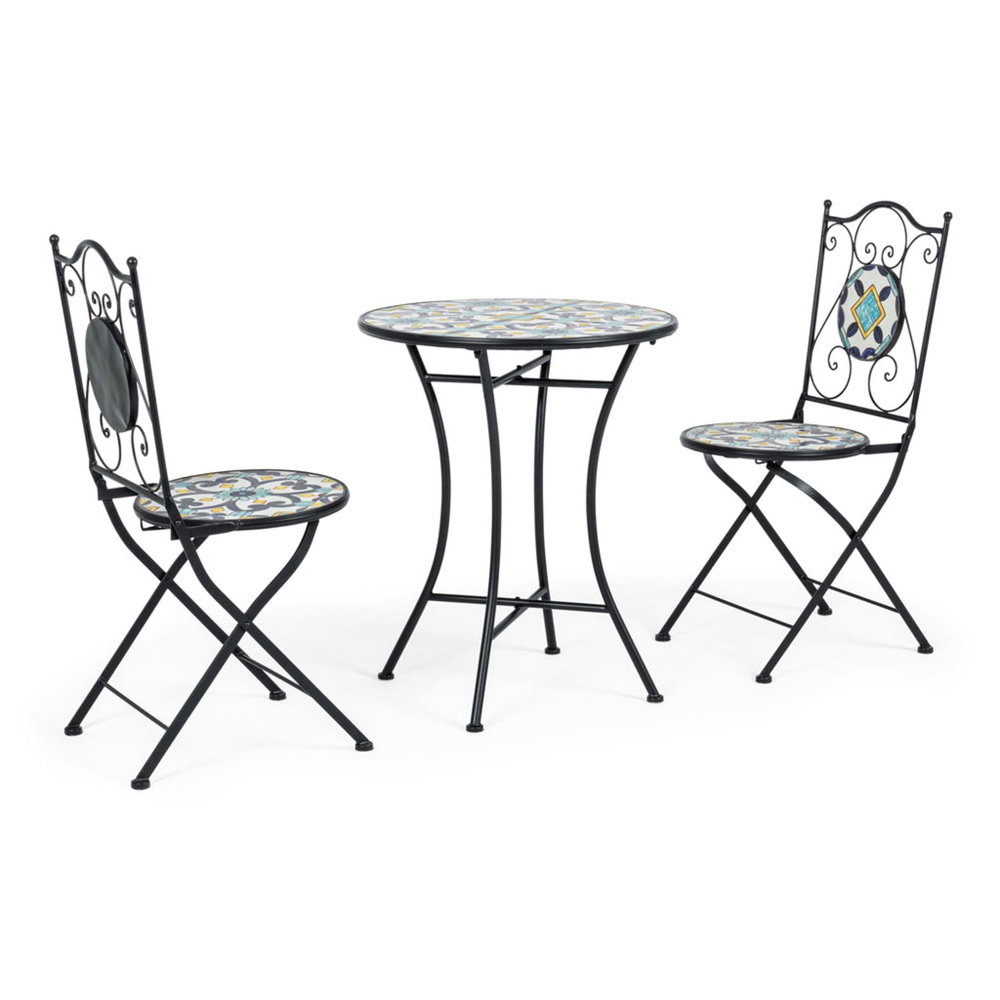 Scopri il nostro elegante set composto da un tavolo e due sedie pieghevoli, perfetto per l'uso all'esterno. Il tavolo ha un diametro di 60 cm e un'altezza di 75 cm, mentre le sedie pieghevoli misurano 38x38 cm con un'altezza di 92 cm (46 cm da seduta). La struttura è realizzata in acciaio trattato per l'esterno, con un rivestimento in e-coating e verniciatura a polvere epossidica, garantendo resistenza e durata nel tempo. Il piano del tavolo, le sedute e i decori sono in ceramica, aggiungendo un tocco di stile e raffinatezza al tuo spazio esterno.