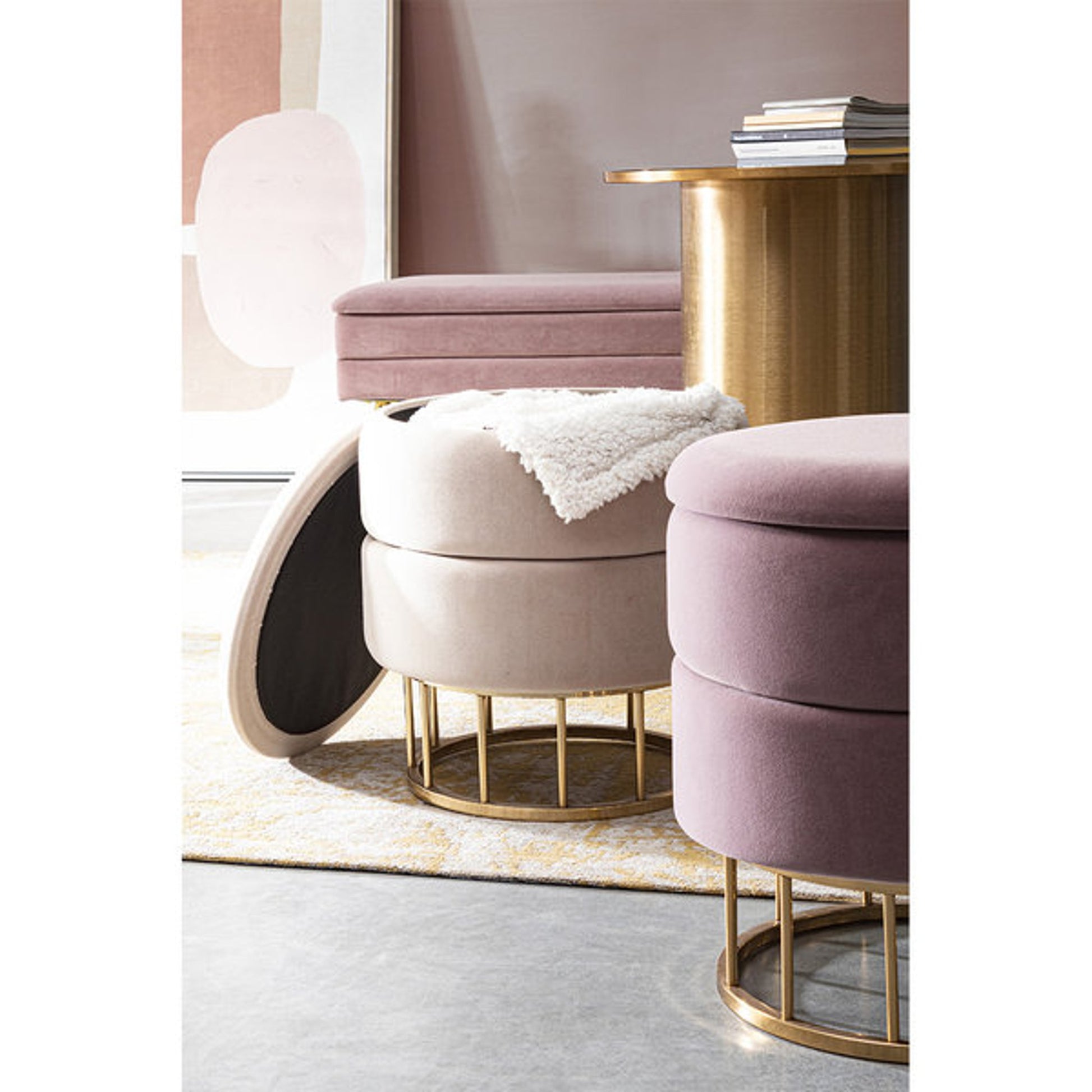 Scopri il nostro sgabello mauve, un complemento d'arredo elegante e versatile. Con dimensioni di 37.5 cm di diametro e un'altezza di 42 cm, questo sgabello è perfetto per ogni ambiente. La sua struttura è realizzata in mdf e compensato, garantendo robustezza e stabilità. Le gambe in acciaio con cromatura dorata aggiungono un tocco di lusso, mentre il rivestimento in poliestere effetto velluto offre una sensazione di morbidezza e comfort. L'imbottitura ha una densità di 30 kg/m3, assicurando un'ottima comodità. Le gambe sono da assemblare, rendendo il trasporto e l'installazione semplici e pratici.