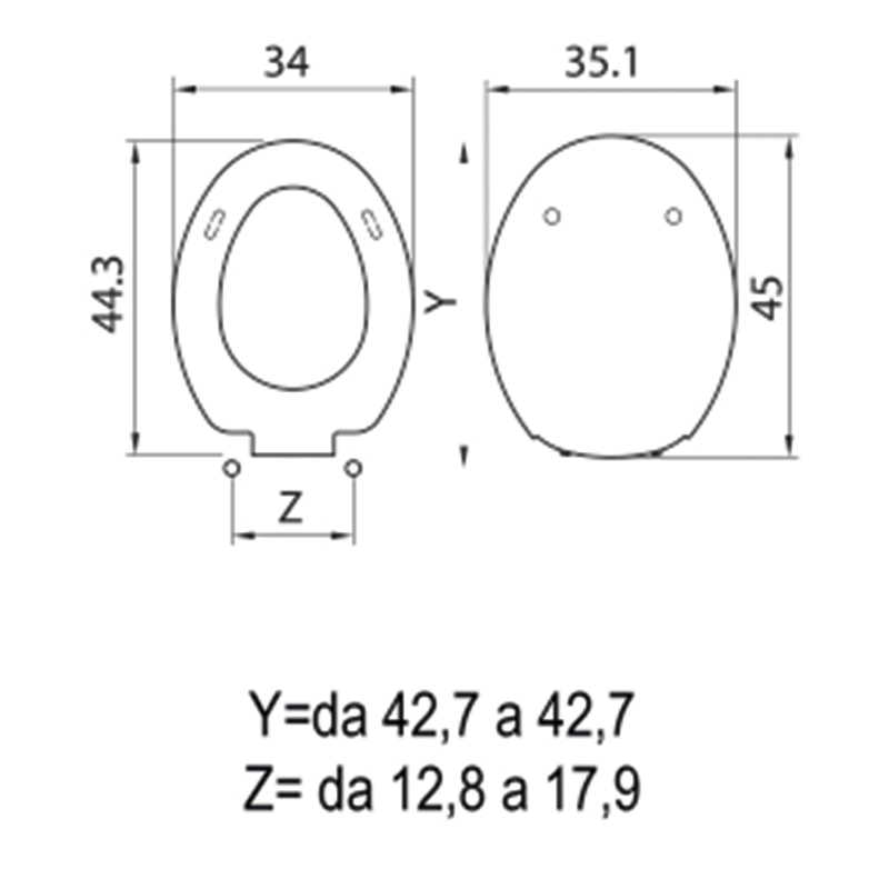 Abattant WC thermodurcissable avec une forme dédiée au modèle Ideal Standard Ellisse.