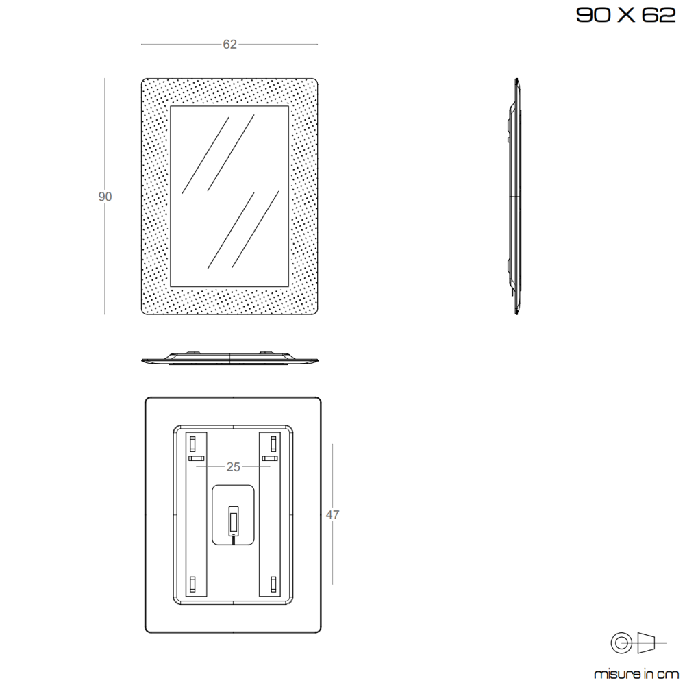 Una specchio dalle linee moderne e raffinate, con cornice bianca in vetro fuso e graniglia, per donare carattere a qualsiasi ambiente della casa. La specchiera ha un telaio perimetrale in pvc color alluminio e può essere installato sia in orizzontale che in verticale. Un oggetto decorativo e di tendenza ma che non rinuncia alla funzionalità, grazie all'illuminazione a led integrata.