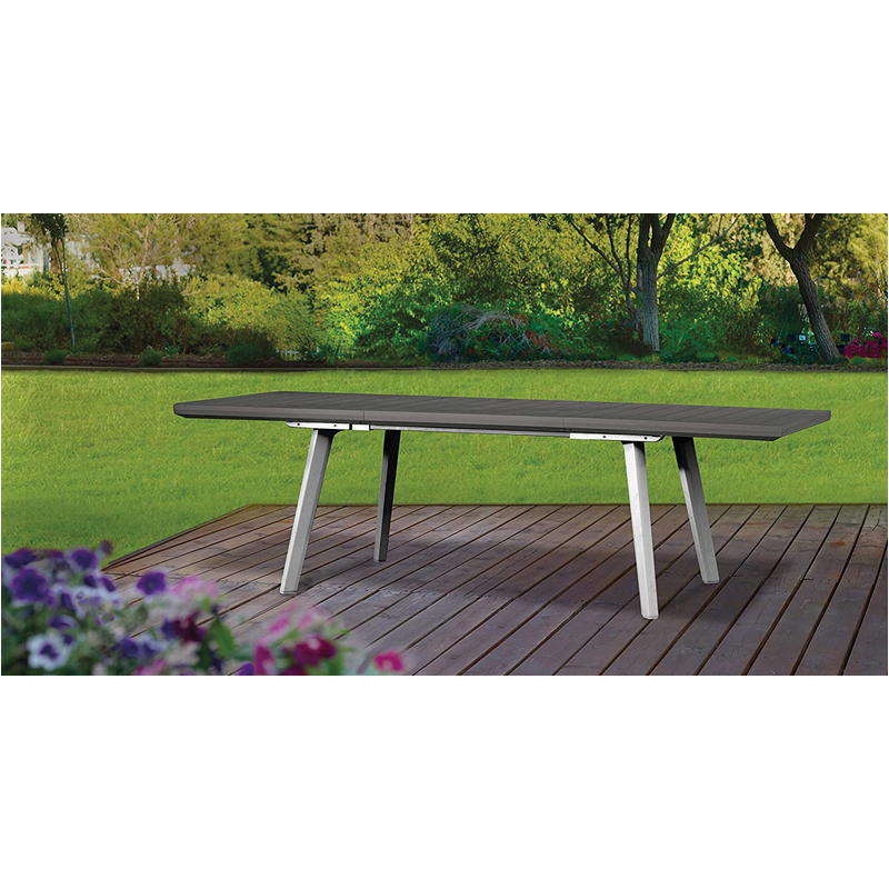 Fabriquée avec une structure linéaire et des lattes avec une finition effet bois, la table extensible Harmony donne un look unique à chaque jardin ou terrasse.