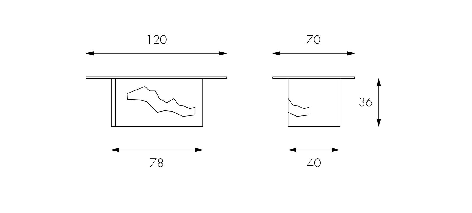 Tavolino trasparente-grigio 70 cm x 120 cm H. 36 cm